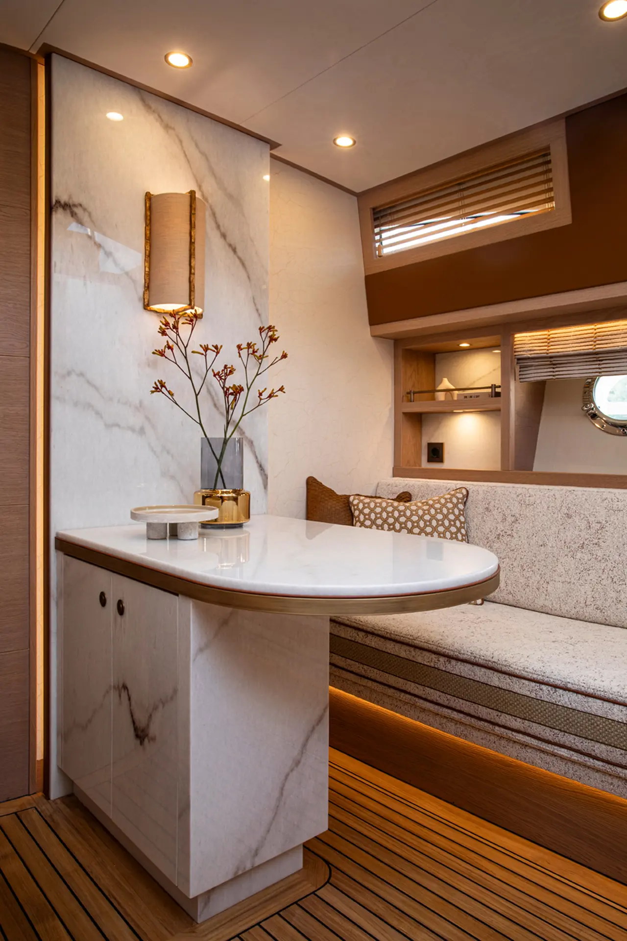 Creating luxury in a yacht requires more than beautiful materials. It demands a choreography of light, layout, and movement. Every inch has been carefully considered, every junction aligned. Lighting guides the eye and the body, flowing naturally from interior to exterior. The result is a harmonious whole: elegant, serene, and quietly confident. Not only did this yacht offer complete creative freedom, it was an opportunity to demonstrate how intimacy and impact are not a matter of scale, but of intention.